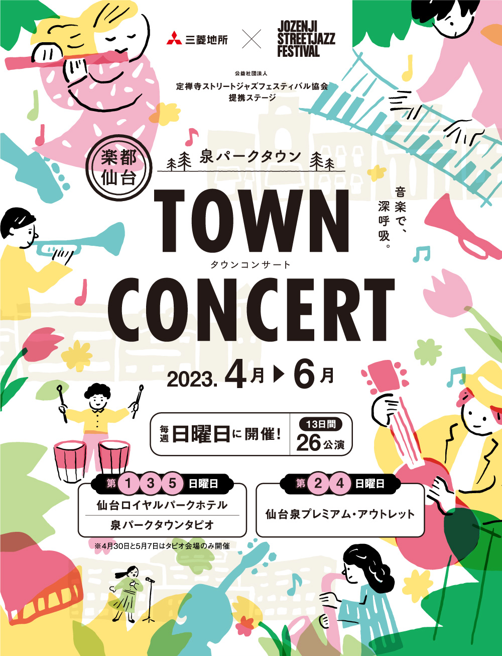 泉パークタウンにて毎週日曜開催のステージ、『楽都仙台 泉パークタウンTOWN CONCERT』4~6月期を実施いたします。